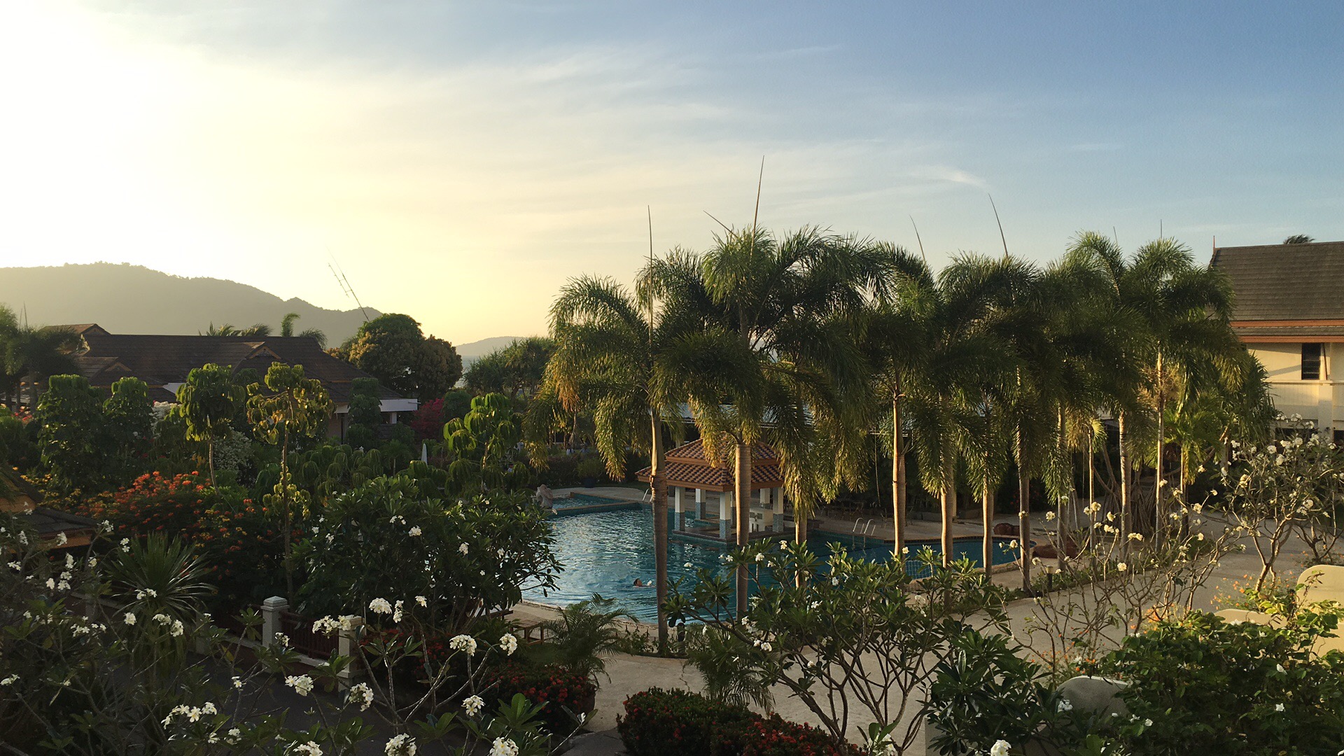 旅行居住的海濱酒店清晨景象